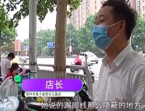 记者随后在理发店里看到,小女孩受伤的地方确实踢脚线有缺失,存在安全隐患。