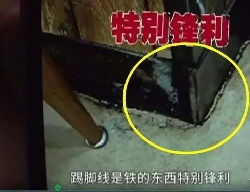 踢脚线是铁的,边缘非常锋利,导致女儿的伤口很深,把女儿送到医院后,缝了十针花了四千多元。
