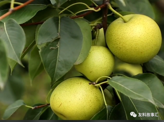黄女士得知刘女士是丈夫的同事,就很热情地接待了他们,还主动拿出摘梨工具去帮刘女士摘梨子。