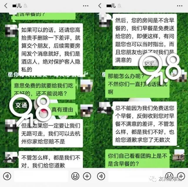 作为酒店一方来说,想要维护自己的口碑这是可以理解的。但是,在被消费者投诉或者给予差评的时候,我们更多的应该是自我检查问题,并发现问题后改善,而不是用软硬兼施或者带有威胁的手段去将责任推给顾客,此次酒店方这么做反而口碑会更加下降,闹大了以后谁也不敢在住他们酒店了。