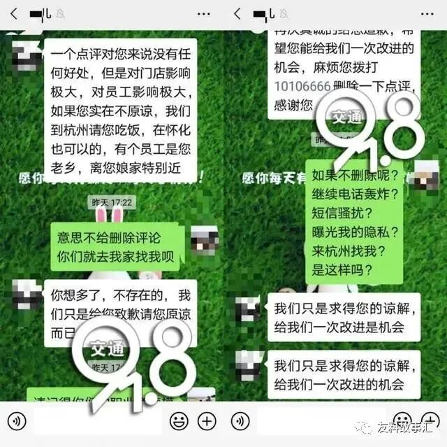 因此他们通过电话方式与王女士联系,希望通过软硬兼施手段让王女士屈服,删除掉这条差评。