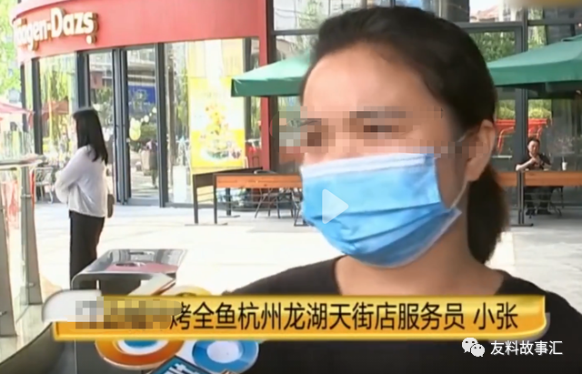 记者也来到了这家烤鱼店,刚好碰到了当天的服务员。
