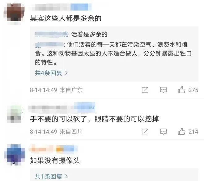 不少网友看到都表示这些活着都是多余,他们活着的每一天都在污染空气,浪费水和粮食,这种动物的基因太强不适合做人,分分钟暴露出牲口的特性。