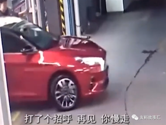 这位女司机表示自己开车已经9年了,前不久刚花10万元购买了一辆新车,这一天来到维修店中进行保养和镀膜,在完事儿以后开着车子正要出去,就看后方有一名工作人员展开了自己的手臂。