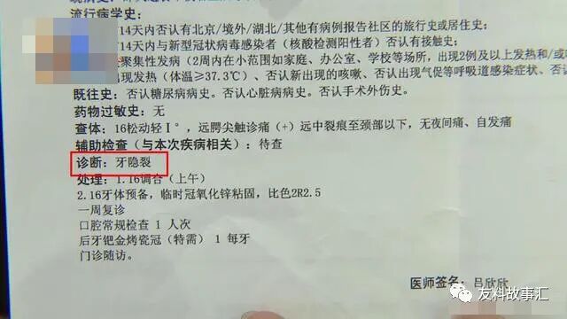 医生诊断说是牙齿裂了,需要做烤瓷牙,当时花了1800块钱。