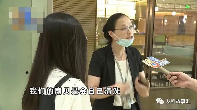 记者提出:扇贝里边有石子,这个正常吗?