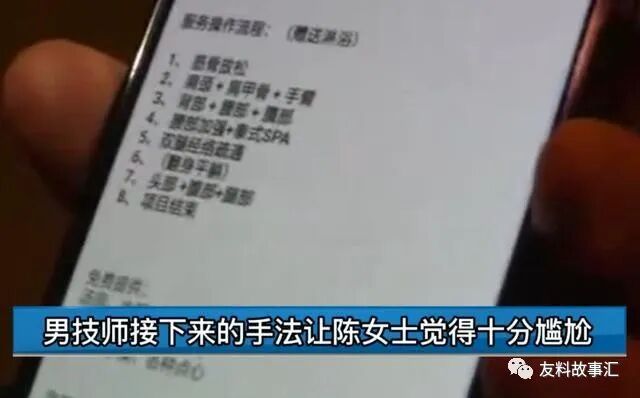 一位男技师,要为女顾客做胸部按摩。这是什么概念?关键是还没等她反应过来,男技师已经直接扯下了她胸前的毛巾。此刻的她惊慌失措。只能赶紧用双手护住胸部。在陈女士的质问之下,这位男技师解释说:我要给你免费做胸部按摩。