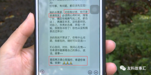 没多久男方就发来一条信息:对你有好感,但只能当普通朋友,最后就是祝小文幸福。