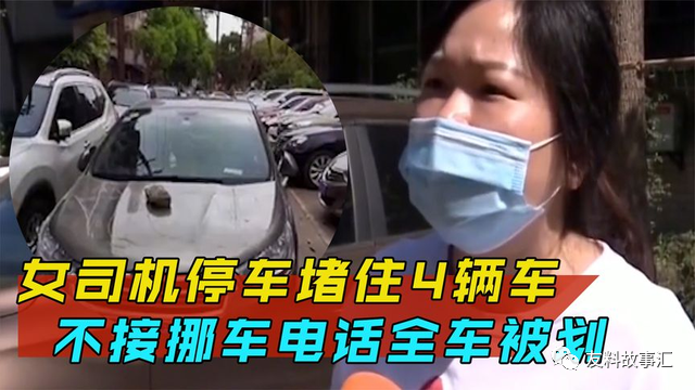 当晚她开车回来后实在没有停车位,于是就把车停在了四辆车的前面。