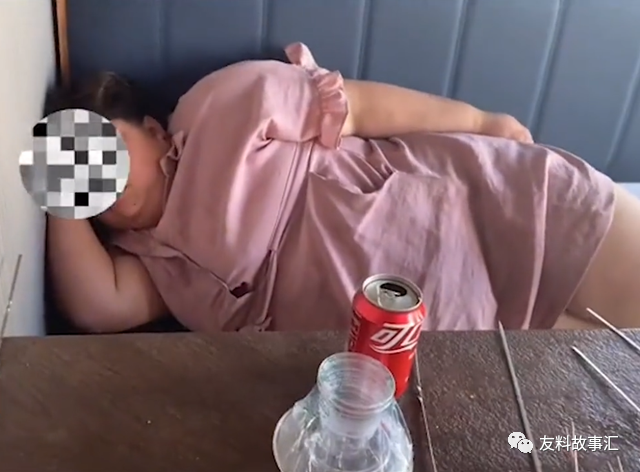 据店员介绍,当天女子在店里点了很多肉,吃着吃着她就开始躺下睡觉打呼噜。