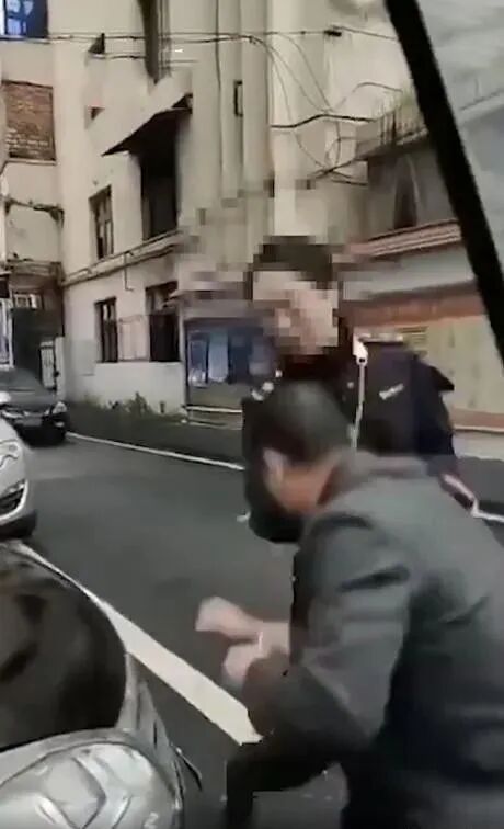 制服女为此动了手,对质疑居民进行扑打,全程被打居民没有还手。