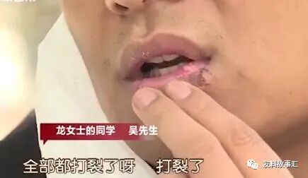 吴先生的嘴唇被打得裂了一道口子,而龙女士也好不到拿去,嘴上流血,脸上多处地方破相。