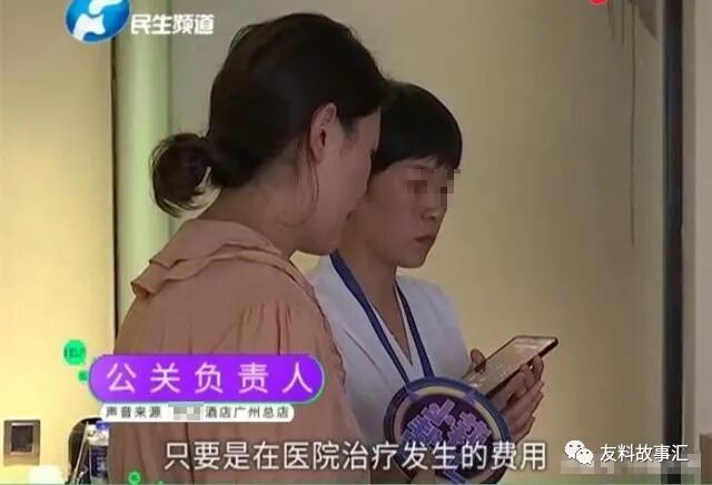 对此酒店负责人现场联系了总部公关负责人,总部负责人表示,后续只要是在医院治疗发生的费用,提供相关票据,酒店方面都会全部承担。