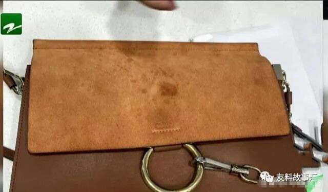 记者现场看了一下,包上的油渍几乎都已经被清洗掉了,不过麂皮部分的颜色和之前的区别也的确不小。