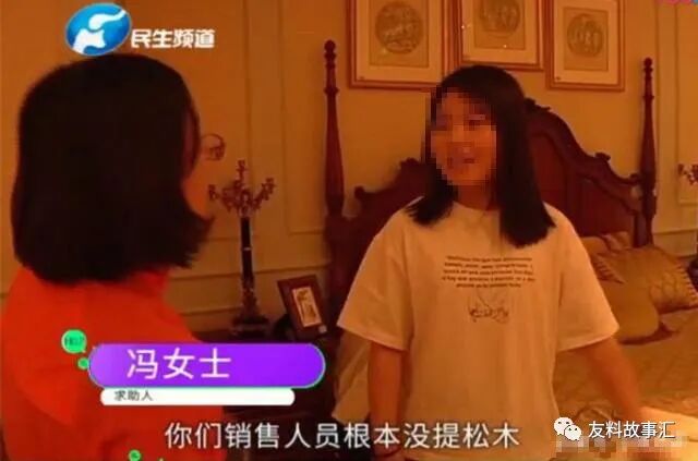 对于工作人员的说法,冯女士当场直言:当时你为什么不给我说是松木板的?你们销售人员根本就没提松木,你当时提松木两个字了没?