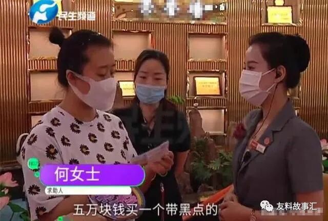 听到这里,何女士气愤地直言:那我花5万块钱买的钻石,上面有这么大一个黑点,这叫性价比高,我就应该买一个这样的?