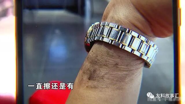 手表买回来已经戴了将近一年了,她突然发现有点不对劲,手腕跟手表表带接触的部位经常发黑,一开始她没有太在意,就用湿巾擦一擦,不过后来这种情况却频频出现。
