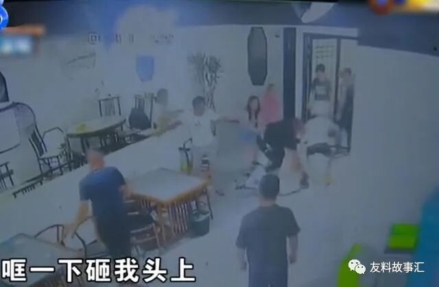 老板娘希望鲍女士一起去唱歌,就让保安队长来拉她,拉扯之下,保安队长对她儿子动了手,掐着她儿子的脖子抵到墙角后拳打脚踢,鲍女士阻止,保安队长拿起桌上的一个抽纸盒哐地一下砸她头上,把她打到了地上,流血不止。她儿子来拉她,被保安队长踹了好几脚,并拿大椅子砸。