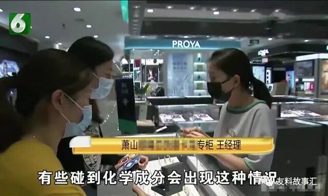 按照王经理的说法,平时使用的一些化妆品或者漂白剂等等,这些产品里面如果含汞的话,手镯碰到这些都会引起这个现象。