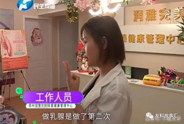 王女士表示,她在这家修复中心做了几次后,日前突然发现有点积奶,然后她就来店里排奶。