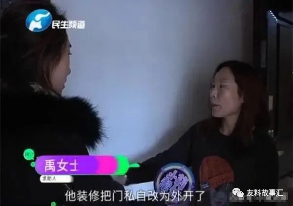 记者对此劝阻禹女士邻居:门的朝向是要考虑公共安全的,不能光考虑到个人,现在把门改为朝外开,确实影响到了公共安全和通道的正常使用,是否应该考虑一下大家的利益呢?