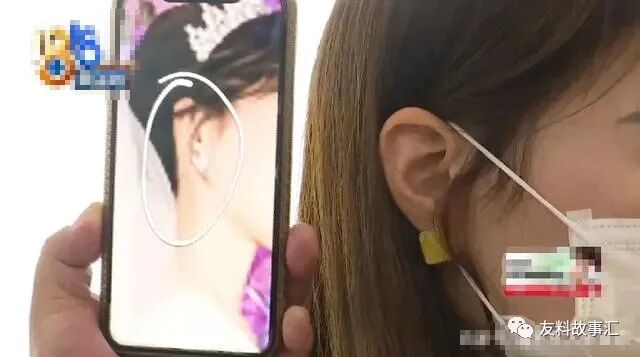 陈女士(左)婚纱中的陈女士耳朵(右)