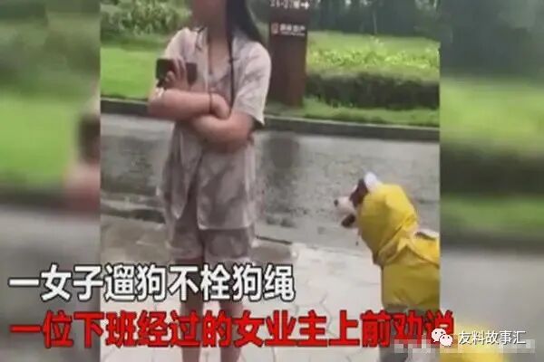 遛狗牵绳是养狗人士应该重视的问题,然而总有一些狗主人对此问题不以为然,依然我行我素,不顾路人的感受。
