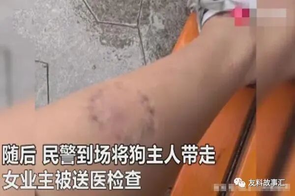 骂到怒火中烧,狗主人脾气上来了,将女业主按倒在地,又打又咬,女业主一个不小心,被狗主人在大腿上咬了一个深深的牙齿印。围观的业主们见此,帮两人报了警,同时也劝说狗主人,那么大的狗,平时在遛狗的时候还是要牵着狗绳,以防万一。随后民警赶到现场将狗主人带走,女业主被送往了医院检查。