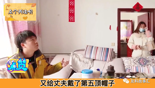 可是妻子彭冰冰也没闲着,一直在忙着给他戴帽子。