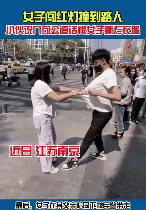 本期就和大家分享一个有趣的故事,10月5日,一名南京的网友发布了一条视频,视频中一名男子的衣服被一名女子撕烂,一开始大家都以为他们是感情纠纷,而事情的真相是女子因为骑车撞人拒不承认,男子站出来说了句公道话,结果女子恼羞成怒,拉扯男子衣服,把男子的衣服撕烂