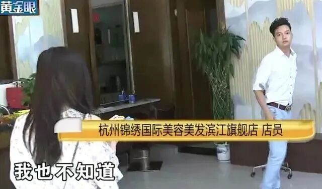 任女士:她当时也没有给我说,这只是半个小时完成的东西,我也不知道这个1980元是包含哪些东西,他们一概没有讲,所以如今我的诉求就是希望他们能退我2500块钱的现金。随后记者陪同任女士来到了这家店里,不过一位店员表示他也不知道这件事,请记者和任女士出去吧,记者在前台看到了投诉电话,但是打过去没有接听。
