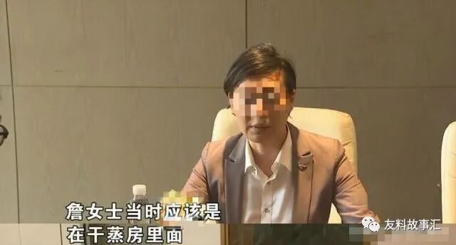 詹女士:“我在蒸桑拿的时候,突然间听到了门外有一名男性工作人员出现了,我一抬头发现是一名男工作人员站在那里,因为那个门是玻璃门,全透明的,当时我没有穿任何的衣服,我都不知道自己该干嘛了,遇到这样的事情我当时非常的震惊,直接慌了。”
