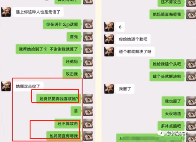 说真的,这怕是所有人都没有想到的,本来是出于好心,想要将捡到的东西物归原主,谁知道,没有得到一句感谢的话,反而还要给女方道歉,而道歉的原因则是,女生误以为男生是她的追求者,并趾高气昂地指责男生“我有男朋友了”,随后,男生无法理解地指出“有病?我就是捡到你的饭卡想给你说下而已”。