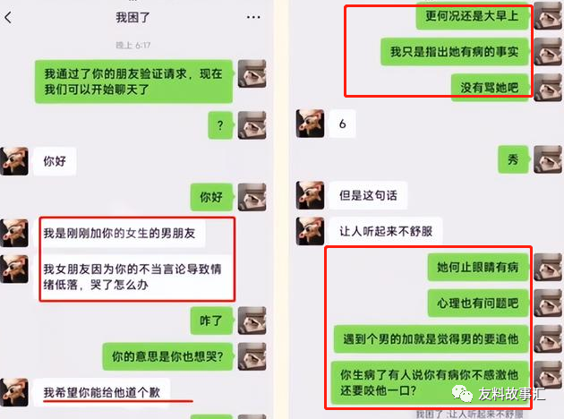 听到此,女子的男友却表示:“那你也不能这么说一个女孩子,而且,她也只是没有看到你添加之时,写的备注而已。”
