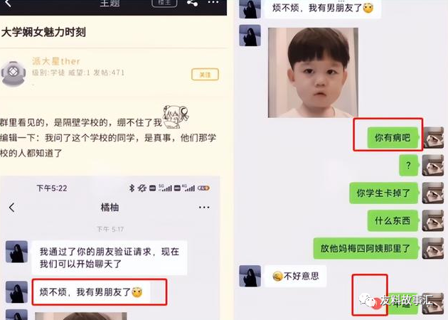 对此,张某凯表示,首先,他在添加女生微信的时候,在备注栏目离说的很清楚,他捡到了女生的饭卡,其次,女生一上来就说自个儿有男友,让他不要纠缠,说实话,这不是自恋是什么?况且,一句“有病吗”完全是因为女生的过度自恋,让他无言以对。