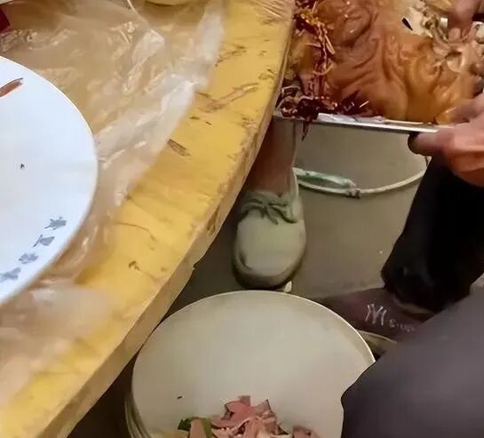 一时间,这一桌所有的宾客都惊呆了,而更让刘女士无法忍受的是,前脚服务员将两个新做出来的荤菜端上桌,后脚,这个老大爷又自顾自地将这两盘荤菜端走,并倒进了他的桶里。