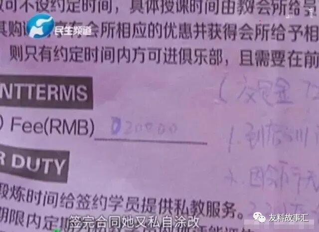 可是当第二天张女士去上课的时候,销售顾问却要告诉她,昨天交的7200块钱是定金,如果想上私教课,就要交100节课2万块钱的全额费用。健身房的转变让张女士非常的生气,于是拿要求健身房拿出合同和销售顾问进行对峙,可是当拿出合同后,张女士才发现健身房已经把合同进行了私自涂改,将7200元变成了2万,而且后面又加了两个零。