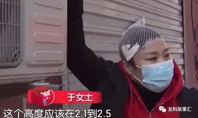 于女士说:“这一块我也上网查了一下,是属于违规的,这个高度正常来说高度应该在2.1米到2.5米,这是其一,再一点即使它伤不到我,也一定会伤到别人,因为这一块突出来太危险了,通常情况下我们往过走,视觉应该在上面的,三角铁大家都直接略过了。”
