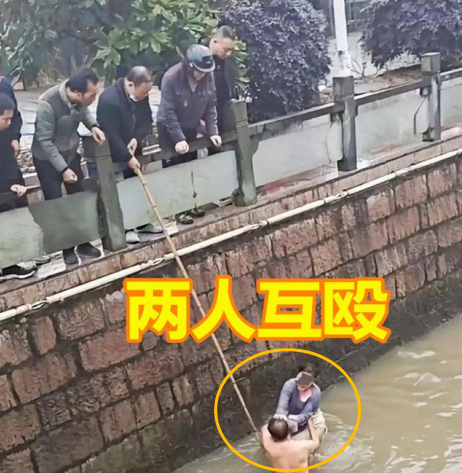 直到女子感觉筋疲力尽,没有力气与大爷争执了,在岸上群众的配合下,大爷终于把女子救上岸。