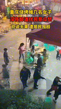 其中一名身穿深色横条纹衣服的女子,因醉酒几次自行倒在地上,其自行爬起来后还曾冲向正在录视频的居民,并试图抢夺居住手上的手机,但被及时制止。