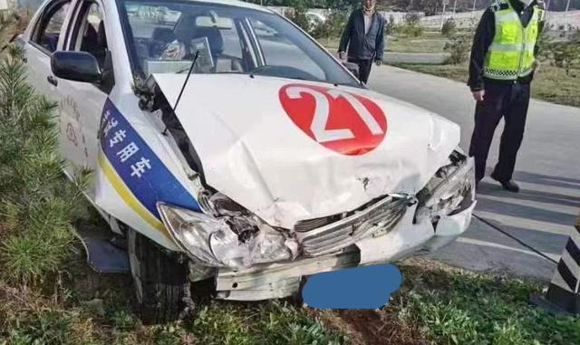 李女士家属提供的照片显示,考试车辆受损严重,先冲过绿化带又撞到了墙上,李女士接受了手术治疗已经脱离危险,但是高额的治疗费让家属很苦恼,李女士姐姐认为,妹妹当时还没拿驾照,训练却无人陪同,考点或者驾校要对此事负责,并赔偿钱财。
