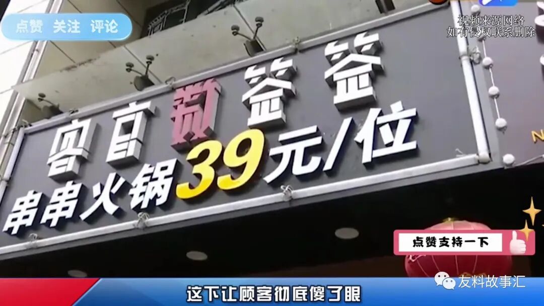 来自杭州的小江告诉记者,他和朋友出去玩,在逛街的时候看到一家串串火锅招牌的店名下面就写着它的价格,串串火锅三十九元一位,让小江一眼就看到了。