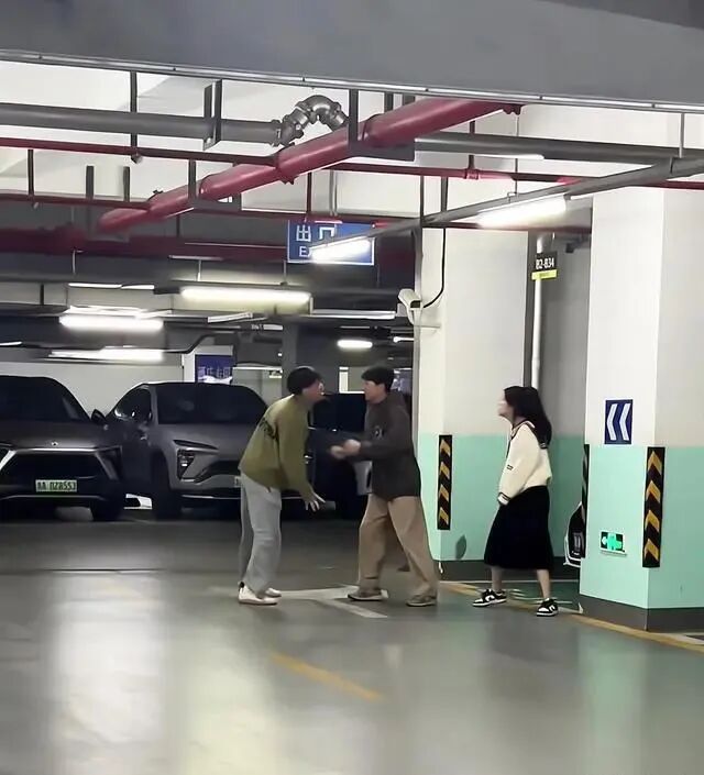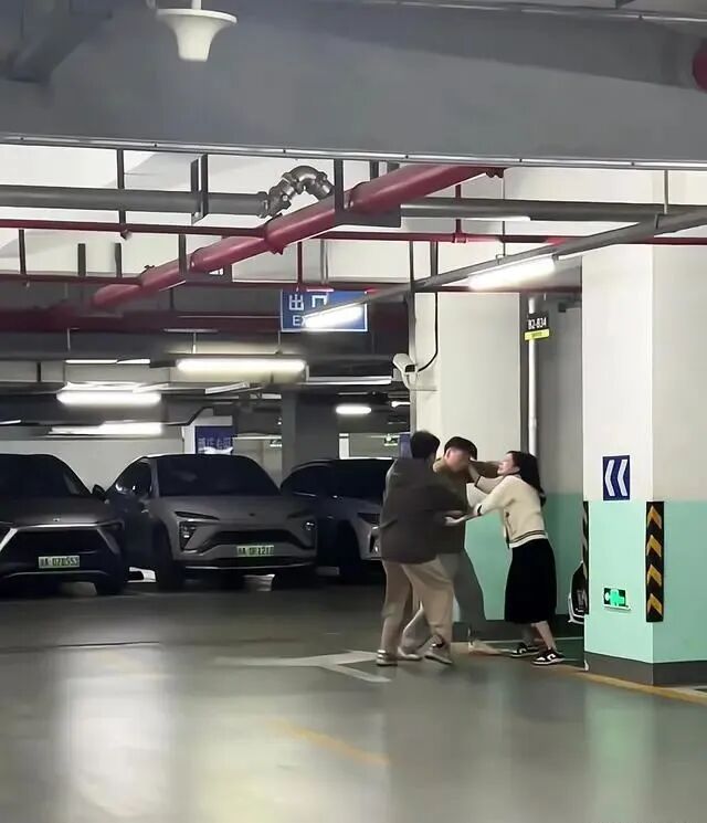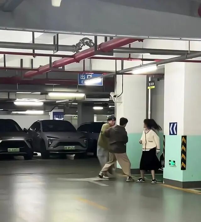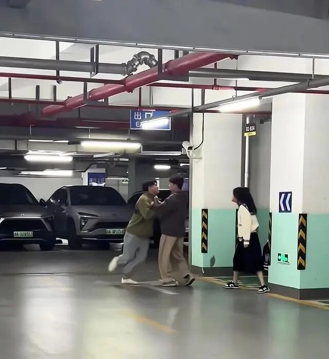 而对方也显然被突如其来的打击给整懵了,开始反击,两个男子就在地下车库扭打起来,而这时候的小萱夹在中间,也不知道是帮谁,现场一度混乱。