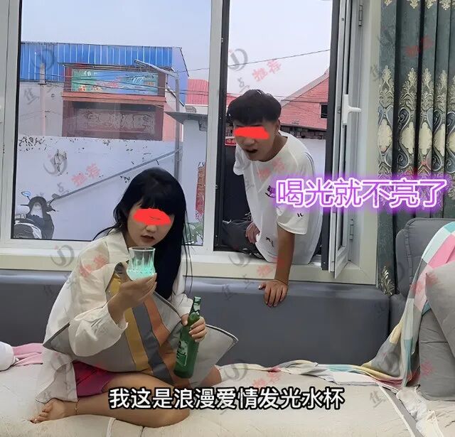 男子一看嫂子很喜欢自己的杯子,就热情地介绍说,这个杯子就是带灯的浪漫杯子,如果嫂子喜欢,可以送给你,我家里还有一个,和这个是一对,说着就给嫂子满上一杯酒,并且告诉女子“嫂子你把酒喝掉,灯光就灭了”