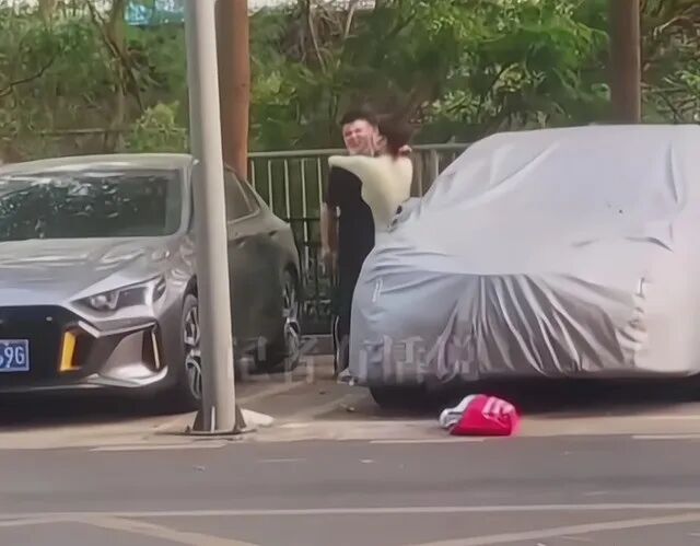 从始至终一直是女子在强行抱住男子不松手,那名男子则使出浑身力气想挣开女子的双手,只是女子抱得太紧,男子难以脱身。