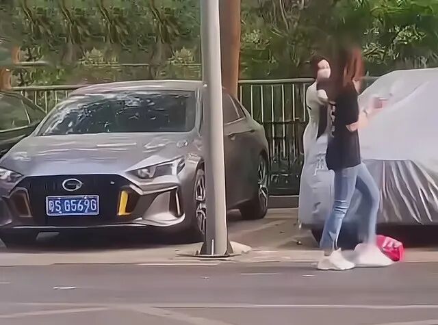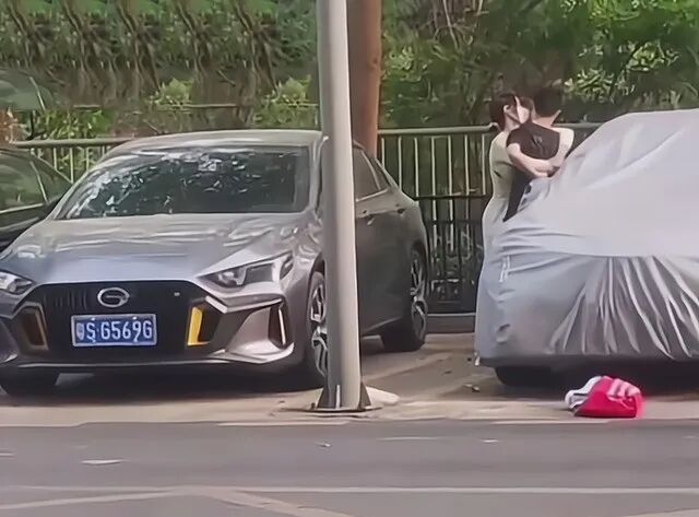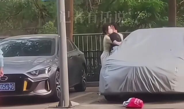 在广东深圳一对情侣在大马路上紧紧地拥抱着,路过的行人都纷纷转头看他们,可是那对男女却不为所动,依旧抱在一起。