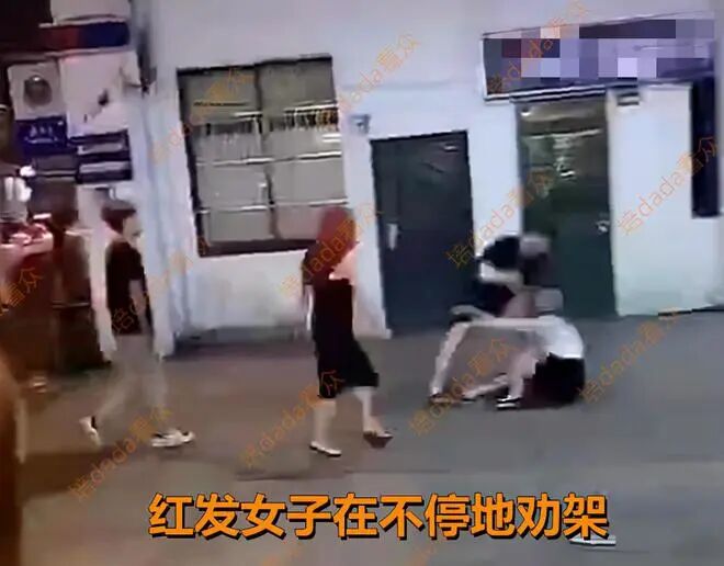 即便是女子一旁染着红发的同事在劝阻男子不要再打人了,可依旧无法平息男子愤怒的情绪,男子也显得毫不在意,踹完之后又用手狠狠地甩了几个耳光打在女子的脸上,清脆的声响让人一听便知力道有多大了。