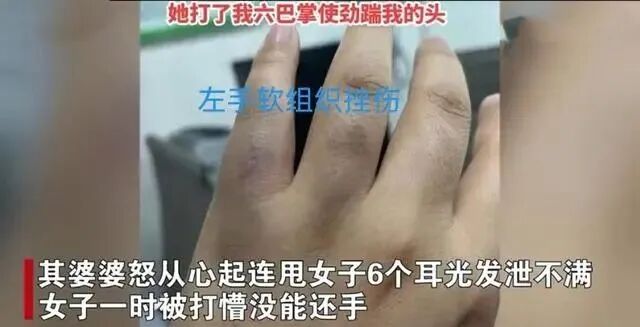 听到这话婆婆一边骂骂咧咧一边直接给了女子一巴掌,先把女子眼镜打掉,紧接着抡起拳头开始往女子身上招呼。