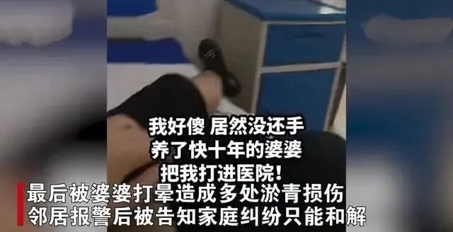 一般来说,婆媳矛盾最多也就停留在发生几句口角上,像这种被婆婆打的情况还真是少见,看完视频给我的感觉和大多数人一样,怒其不争哀其不幸。