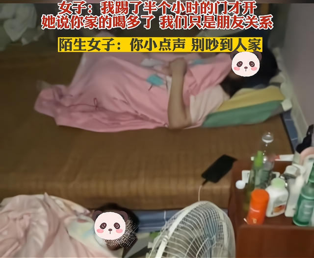 只见丈夫躺在床边的地板上睡觉,无论声音多么吵,都一副沉睡不醒的样子。陌生女子则是躺在床上的被窝里,气定神闲地让妻子声音小点,不要吵到人。